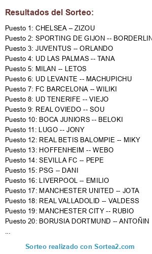 Resultados del sorteo: