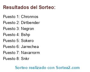 Lista de participantes: Bshp, Dirtbender, Chronnos, Sokero, Jarrechea, Navarrorm, Negron, Snkr.