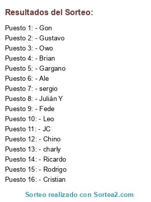Resultados del sorteo: