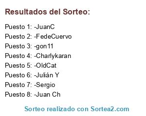 Lista de participantes: -JC, -Julián, -Maci, -Martín KannonFC, -Branko, -Juan CH, -Leo, -Mariano, -Mijorro, -Elsenpai, -gonza11, -gustavo, -Krkaran, -Jor, -Alan Morientes, -Velsharoon.