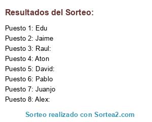 Lista de participantes: Juanjo, Edu, Jaime, Raul:, Alex:, Pablo, David:, Aton.