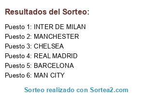 Lista de participantes: REAL MADRID, BARCELONA, INTER DE MILAN, CHELSEA, MANCHESTER, MAN CITY.