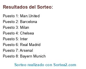 Lista de participantes: Real Madrid, Barcelona, Inter, Milan, Chelsea, Arsenal, Man.United, Bayern Munich.