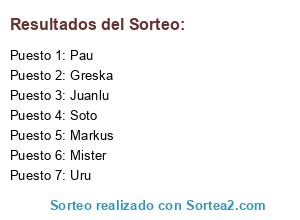 Lista de participantes: Uru, Mister, Markus, Greska, Soto, Juanlu, Pau.