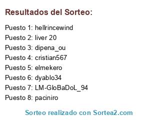 Lista de participantes: elmekero, paciniro, liver 20, LM-GloBaDoL_94, dyablo34, cristian567, dipena_ou, hellrincewind.
