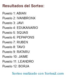 Lista de participantes: METRA, PEDRINHO, BOLLO, SADOUM, GERI, NAUTILUS, BARROS, XEVI, SERGIO, ARKAREMION, POLLO, JORDI, YEPES, IVAN CM.