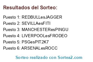 Lista de participantes: ARSENALesROCC, MANCHESTEResPINGU, REDBULLesJAGGER, PSGesPIT2K7, SEVILLAesFITI, LIVERPOOLesFRODEO.