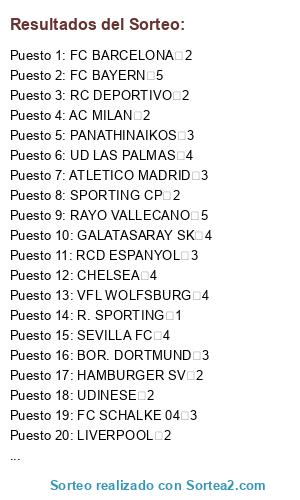 Resultados del sorteo: