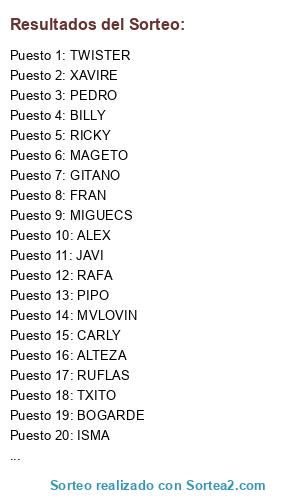 Resultados del sorteo:
