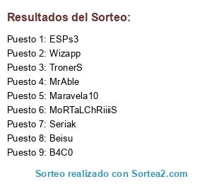 Lista de participantes: Beisu, Maravela10, Seriak, Wizapp, ESPs3, MoRTaLChRiiiiS, B4C0, TronerS, MrAble.