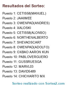 Lista de participantes: CETIS58(MANUEL), CETIS58(ALONSO), CHICHARITO MX, DAVID5489, GUSSRUESGA, JAAIIMEE, MARVL03, NORTHENALBERTO, OXBAO AARON KUN, OWENPAD(ANDRES), OWENPAD(ADOLFO), PABLOVERGUERO, SHEVAOSCAR7, XALOSKI.