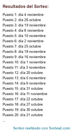 - Puesto 31: día 14 noviembre