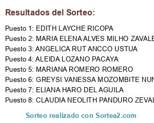 Lista de participantes: BILLA LIZBETH ALVARADO HUAMAN, BRENDA RODRIGUEZ AVILA, BRICETH ATENCIA DELAU, CAROL ANDREA LLERENA CAHUACHI, CAROLA VILLANUEVA TRAUCO, CAROLINA LUZ CRISTINA TEJADA PANDURO, CLAUDIA NEOLITH PANDURO ZEVALLOS, DAMARIS DEL CARMEN HUALINGA RUIZ, JANETH TORRES CHOTA, JESSICA PILAR PAUCAR HUAMAN, JUAN DIMAS CHOTA REATEGUI, LIBIA CAMAYO ARICARA, LIDIA MARGARITA REYNA ECHEVARRIA, LLERME PADILLA AREVALO, MARIA ELENA ALVES MILHO ZAVALETA, MARIA ELENA AYAMBO ROJAS, MARIA ELIZABETH FRANCO PRADA, MARIA HUAMAN SALAS, MARINA VIDALON ARSENTALES, MARJORI LOPEZ LOZANO, MONICA VIVIANA GUERRA PEREZ, ROCIO DEL PILAR DEL AGUILA VERGARA DE YON, RUBI KARLA SAAVEDRA CORAL, RUTH VERONICA LOPEZ OLIVA, SANDY LORENA PEREZ PEZO, YRMA MIRE PASMINO VIUDA DE AREVALO, ALEX MANUYAMA MAYTAHUARI, CELIA CHONG LIMA, CLAUDIA MONTANO COSTA, CRISTINA MICHELLE OLORTEGUI ARBILDO, EDITH LAYCHE RICOPA, GINA VICTORIA GARCIA PENA, JIRA VANESSA NAPUCHE VILCHEZ, JUAN ARQUIMEDES HUANSI PACAYA, KARINA LIZETH SIFUENTES FLORES, LESLY ESTEFANY MANZANARES MENDEZ, LITA ISABEL TORRES CONQUINCHE, LUCINDA RAMIREZ RAMIREZ, LUZ GRACIELA CORONEL ZUMAETA, MARILU VARGAS SANTILLAN, MERY REATEGUI RAMIREZ, MIRTHA IRENE SANDOVAL FLOWER, MONICA MENDEZ MACHUCA, PAOLO CESAR GONZALES PAIMA, RUSVEL SALDANA GARCIA, VERONICA CELIA MEDINA DIAZ, IVONNE DEL CASTILLO GOMEZ, ANGEL EDUARDO LOZANO GUEVARA, ANGELICA RUT ANCCO USTUA, BETY RUIZ AGUILAR DE OCHIN, CHERYL TATIANA MONTELUIS BICERRA, CLAUDINA ROSA CASTILLO AGILIO, DANYCSA KANDY VALERA VASQUEZ, DORIA LIZ PENA REATEGUI, JULEISI ADITA ACOSTA MACUYAMA, KETTI DAVILA TAPULLIMA, LIZALIANCA HAYBI VALERA VASQUEZ, MANUELA TENAZOA MORI, MARIO VILCHEZ GORDON, NARSISA EUSEVIA GAVILAN CCALLALLI, NAYLEA YESENIA PAVA RENGIFO, ROCIO DEL PILAR SORIA BARRERA, ANA MARIA HIDALGO INUMA, DAYANTH NICOLE TELLO ZAMORA, DEYVID LUIS SANCHEZ PINTO, FLOR ALICIA OJANAMA RODRIGUEZ, FRANCISCO MEJIA SALDANA, GINA BETZY TOS REYNA DE GUERRA, JANICE RIOS GUZMAN, JESSENIA RODRIGUEZ PINEDO, LADY AZUCENA RIOS PAZ, LLULI MONTES SINARAHUA, LUIS ANTONI DORADO MANIHUARI, MARY JANETH LOPEZ RAMIREZ, NORMA SANCHEZ PINTO, OLGA MARINA BARDALES ISUIZA, PATRICIA PAOLA GUERRA TORRES, ROSMERY TORRES SANTILLAN, RUTH MONICA SANGAMA DAHUA, KARITO DE JESUS SILVA VILLACORTA, ADA AGUILAR PADILLA, CARLITA DALILA GARCIA DAZA, CARLOS ENRIQUE LOPEZ AGUILAR, CARMEN CARTAGENA RAMIREZ, DANNY RANDY VASQUEZ BARDALES, DELIA SANCHEZ MELENDEZ, ELISENDA THERESA SANDOVAL RIOS, ENEDINA AMASIFUEN TUAMANA, FERNANDO PANAIFO ANGULO, FIORELLA FRINE ESTRADA GARCIA, JAVIER SALAZAR SALDANA, KETTY JOVANI DEL AGUILA GOMEZ, LILIA GOMEZ CHOTA, MARIA DE LOS ANGELES NASCIMENTO PANDURO, MARILU ENCISO DE ALVAN, NILTON ADIEL PANDURO GUERRA, NIXON PEREZ SILVA, ROSA AYLIT MARQUEZ RIOS, RUTH PRICILA NUNEZ CURICO, SADITH PEN/A CAHUACHI, SARA ANTONIA YALTA RUIZ, SILVIA MARILIN PINEDO LLERENA, VIVIANA PEREZ ZUMBA, YANINA SANCHEZ VIENA, YULIANA MARIA CRUZ CORDOVA, CLARITA MURAYARI HUANSI, DORA CHILSA DAVILA BRUNO, ELISA RODRIGUEZ LINARES, ERICKA OCMIN MOREY, JAMES OSWALDO SANCHEZ FERREYRA, KELLY ELIZABETH ORBE GUERRA, LUPITA DEL AGUILA DEL AGUILA, MILENA VASQUEZ INUMA, NORA CRISTINA VALERA RIOS DE PAREDES, NORIS HIDALGO DEL AGUILA, NORMA ESTHER ZEVALLOS GONZALES, SANDIE OROCHE AMIAS, SANDRA GONZALES AGUILA, AUGUSTO ANTONIO ZAVALETA VILCA, ELITA QUISPE HONORES, HIARA ALICIA GONZALES MOREYRA, IVETH ISUIZA ICOMENA, MARILI BARBARAN NALVARTE, RICHARD JACKSON HUAYMACARI HUAYUNGA, ROSA AJANDRINA MACEDO ANGULO, ROSA MARIA RODRIGUEZ LOZANO, VIVIAN SANCHEZ VELA, LUZ AMANDA SILVA TRIGOSO, IVET NADIA PENA UTIA, ALICIA MURAYARI HUANSI, CARLOS SEGUNDO ALAVA ARIMUYA, MARIANA ROMERO ROMERO, ALEIDA LOZANO PACAYA, ALEX SCOTT JUNIOR RENGIFO MACEDO, CARMELA CASTILLO BAUTISTA, CARMEN DEL PILAR OROCHE DE FLORES, CLOTILDE TORRES CUMAPA, ESMERALDA LETICIA FASANANDO SIFUENTES, GINA ELIZABETH MORI RENGIFO, MARLITA CHOTA NUNEZ, STEVEN STEFANO SANDOVAL SANCHEZ, XIOMAR ALEXANDRA RENGIFO AREVALO, JESUS BAOS VIUDA DE PICON, BRIGIDA SAAVEDRA PASMINA, CARLOS ENRIQUE CARDENAS PANDURO, CARMEN DAVILA RIOJA, CARMEN DE PILAR LAULATE ACHO, CELIDONIA HARO DEL AGUILA, CLAUDIO JAIR RODRIGUEZ MORENO, CRUZ MARINA AMASIFUEN DE VARGAS, DENISSE PARANA MANABU, ELIANA HARO DEL AGUILA, GLADYS URBINA SILVANO, HENRY DAVID GONZALES JIMENEZ, JAVIER NUNEZ PINA, JESUS SMELL VILLACORTA PAREDES, JHON LANDER JULCA PAIMA, JORGE LUIS GONZALES FASABI, JOSIMAR BARBARAN PEREZ, LELIS TORRES NAVARRO, LENY DEL PILAR VALCARCEL CORONADO DE PEN, LIZETTY CARLYEDH GOMEZ RIOS, LUZ ELENCITH SHUNA LUNO, MARIA MAGNOLIA CHONG OYARCE DE TAMANI, MARLENE PENA RUIZ, MARNITH PINEDO DE GONZALES, MELISSA JENIFFER VASQUEZ CACHIQUE, MILGROS VANESA PACAYA GUELLE, NAIS NAJAR SANCHEZ, NARCY ARGELY BARDALES FLORES DEL SANCH, OFELIA DAHUA SANDI, PILAR TUESTA VILLACORTA, RAQUEL DEL AGUILA RICOPA, ROCIO DEL PILAR VELA CHUMBE, RUVI YUNELY SALDANA BOBADILLA, SEMIRA CERRON CHALO, SILVIA LIBERTAD PINASCO SILVANO, TANIA RUTH MARICHI IJUMA, PATRICK GISSELA GOMEZ RIOS, ANGELA MILAGROS PAREDES PEREZ, EMI ARIRAMA AHUANARI, MAYULI MOZOMBITE GARCIA, NEHEMIAS PARANA HERRERA, ALICIA GONZALES HUAYNACARI, CYNTHIA ISABEL TUANAMA AGUILAR, EUGENIA ARIRAMA YAICATE, JUANA MERCEDES TAPAYURI ARIMAYA, KELLY PATRICIA SARMIENTO NAVARRO, LUCIA PEREZ SORIA, MAGALY SILVANA FARTOLINO HIDALGO, NEFERTITI SANTILLAN IRARICA, PATRICIA RAQUEL RIVAS SAURIN DE A, PAULA MERCEDES SOTO ZAMBRANO, ROSA MARLENE GARCIA VILLACORTA, DALIA LUISA CHANCHARI INUMA, JENNIFER PIZANGO YUMBATO, ANALI FASABI SAAVEDRA, BETTY PINEDO FLORES, CANDY TUCTO IRIARTE, ESTRELLITA SILVANO TARICUARIMA, GISEL JANETH TARICUARIMA GARCIA, GREYSI VANESSA MOZOMBITE NUNEZ, GUIBETH PAMELA SILVANO MANEO DE PANDURO, ISOLINA SOLON RICOPA, JEISY MARILI PANAIFO NATORCE, KATY MARJORI MANEO MOENA, LUCY YESENIA CHUJUTALLI SILVANO, MARISOL LAVAJOS CABALLERO, MARITA IVONNE SOLON OROCHE, NORMA MARILU MOZOMBITE ARIMUYA, ROMULO AHUANARI TAMANI, SEGUNDO ALFREDO AREQUI TARAZONA, KAREN DOLIBETH CORTEGANO PINCHE, PAULO CESAR SOPLIN ORDONEZ.