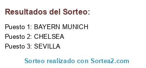 Lista de participantes: SEVILLA, BAYERN MUNICH, CHELSEA.