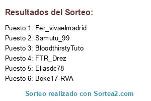 Lista de participantes: BloodthirstyTuto, Eliasdc78, FTR_Drez, Samutu_99, Fer_vivaelmadrid, Boke17-RVA.