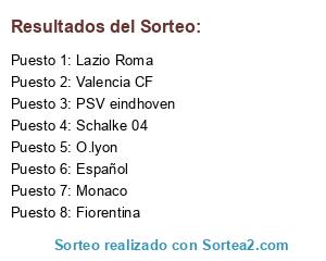 Lista de participantes: O.lyon, Lazio Roma, Monaco, PSV eindhoven, Español, Fiorentina, Valencia CF, Schalke 04.