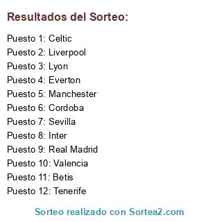 Resultados del sorteo: