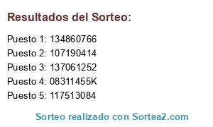 Resultados del sorteo: