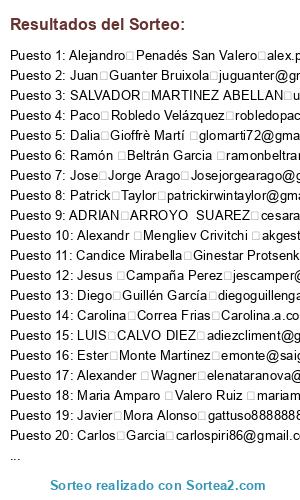 - Puesto 258: Jaime JORDAN LOPEZ jaumijjl@gmail.com