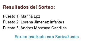 Lista de participantes: Andres Moncayo Candiles, Noemi Cg, Marina Lpz, Pilar Gómez Parrado, Lorena Jimenez Infantes, Ana Álvarez Rodríguez, Familia Corrales Sanchez, Andrea Leon Landeira, MariaEsther Rodriguez Garcia, Maria Felix Ruibal Pazos, Shey Milan, José Antonio Moreno Amado, Mercedes Carrasco Moreno.