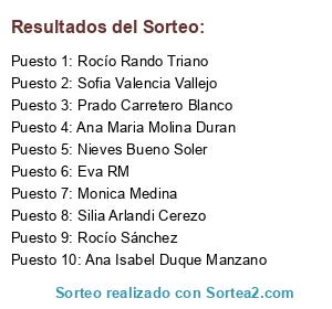 Lista de participantes: Inma Ruiz, Ana Calderón, Mari Angeles Cubo Ruiz, Laura Morales, Vane Ramos, Prado Carretero Blanco, Desirée Aguilar, Ana Isabel Duque Manzano, Maria Mar Navarro Berdugo, Ana Martín Duque, Romero Ortigosa Toñi, Ana Isabel Paniza Jiménez, Rosa Ramos Lopez, Almu Ramírez Romero, Santi Dominguez Martin, Maria Lincas, Eva RM, Patri Peluquera, Ana Qn, Blanca Blazquez, Susana Segura, Monica Medina, Verónica Ruiz Molina, Ana Maria Molina Duran, Yolanda Lucena Fernandez, Maria Elsafi Navarrete, Francisca Martín Vergara, Virginia Toledo Leon, Rocio Vargas, Sofia Valencia Vallejo, Gema Angulo, Pili Lopez Zamora, Rocío Rando Triano, Sandra Romero, Maria Luisa Burgos Leiva, Lulo Burgos, Julia Fernandez Colomo, Araceli Sg, Virginia Granados, Ana Maria Rando Guirado, Jéssica Ruiz Meléndez, Rocio Malaguita Curro, Simplemente Lety, Sonia Zayas España, Fabi Silvera, Rocio Lopez Soler, Maria Mar Conejo Jimena, Mercedes Bandera Moreno, Rocío Sánchez, Nieves Bueno Soler, Maria Jesús Pacheco Pelaez, Maria Gracia Arevalo Lopez, Silia Arlandi Cerezo, Irene Hidalgo Quintero, Maribel Sanchez Exposito, Noelia Moreno Cisneros, Vero Medrano, Paqui Martín, Angeles Moreno Alcaraz, Enrique Aranda Jimenez, IndiRa Blume, Fleur Colorística.