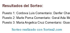 - Ganador 3: Maria Angelica Cruz Comentario: Giusseppe Ramirez Zu Hurtado Carlos José Márquez Quispe 🤗🤗🤗