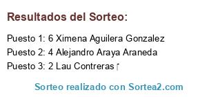 Lista de participantes: 1 Brnyla Venegas, 2 Lau Contreras , 3 Patricia Estefania Serrano Jayaro, 4 Alejandro Araya Araneda, 5 Álvaro Castillo, 6 Ximena Aguilera Gonzalez.