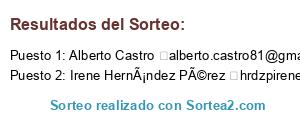 - Puesto 1: Alberto Castro alberto.castro81@gmail.com