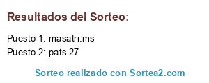 Lista de participantes: carmenjavaloyes, masatri.ms, pats.27, marimarimontana, jiranzom, toniserranomartinez, pats.27, pats.27, pats.27, patmarpast, patmarpast, pats.27, pats.27, gabrijr13.