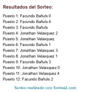 Resultados del sorteo: