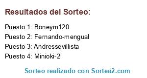 Lista de participantes: Rexloba, Boneym120, Minioki-2, Andressevillista, Fernando-Mengual.