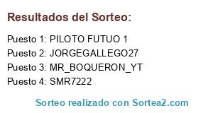 Lista de participantes: JORGEGALLEGO27, SMR7222, MR_BOQUERON_YT, PILOTO FUTUO 1.