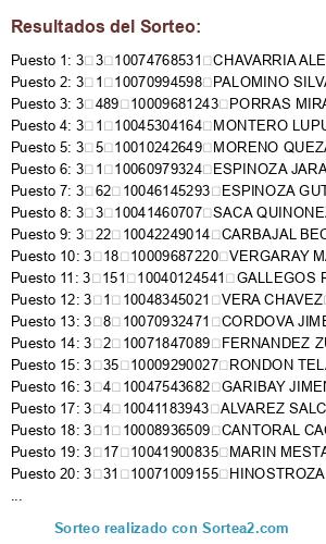 - Puesto 11: 3 151 10040124541 GALLEGOS RAMOS JOSE LUIS
