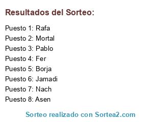 Lista de participantes: Mortal, Jamadi, Rafa, Asen, Pablo, Nach, Fer, Borja.