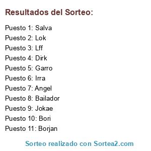 Lista de participantes: Salva, Dirk, Borjan, Garro, Bori, Irra, Jokae, Bailador, Angel, Lff, Lok.