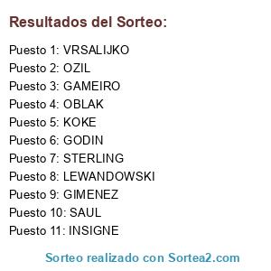 Lista de participantes: OBLAK, GODIN, GIMENEZ, VRSALIJKO, KOKE, SAUL, OZIL, STERLING, GAMEIRO, INSIGNE, LEWANDOWSKI.