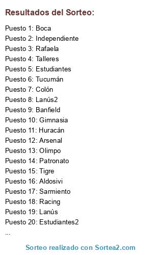 Resultados del sorteo: