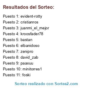 Lista de participantes: minitorres1, foski, paaxuu, evident-rotty, zenipro, juanmi_el_mejor, kroosfader78, bastan, david_zab, elbanidoso, cristianros.