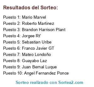 Lista de participantes: Brandon Harrison Plant, Mateo Londoño, Franco Javier GT, Juan Bernal Luque, Jorgee Rt', Sebastian Uribe, Roberto Martinez, Angel Fernandez Ponce, Guayabo Laz, Mario Marvel.