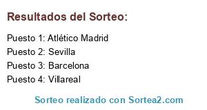 Lista de participantes: Atlético Madrid, Villareal, Barcelona, Sevilla.