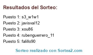 Lista de participantes: falillo90, javisval12, xou86, rubenguerrero_11, s3_w1w1.