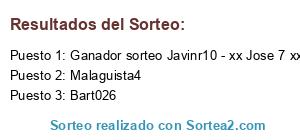 Lista de participantes: Bart026, Malaguista4, Ganador sorteo Javinr10 - xx Jose 7 xx.