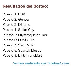 Lista de participantes: Betis, Malaga, Levante, Getafe, Atletic, Sevilla, Stade Rennais, Saint Etienne, Olympyque de lion, montpellier HSC, Marseille, LOSC Lille, PSV, AJAX, Aston VIlla, West Ham, West Brom, Swansea, Sunderland, Stoke CIty, Southampton, Norwich City, FUlham, Altanta Udinese, Torino, Parma, Genoa, Sportin CP, FC Shaktar, Olympyakos, Spartak Moscu, Lokomotiv, DInamo, VfB Stuttgart, Hannover96, Hamburguer SV, Eint. Franckfurt, Bor. M´gradbach, 1899 Hoffenheim, Atl. Mineiro, Sao Paulo, Cruzeiro.