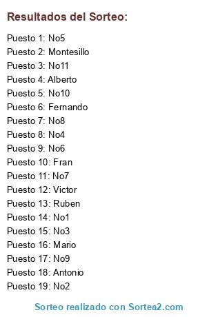 Lista de participantes: Alberto, Antonio, Fernando, Fran, Mario, Montesillo, Ruben, Victor, No1, No2, No3, No4, No5, No6, No7, No8, No9, No10, No11.