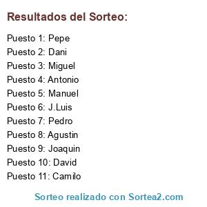 Lista de participantes: Antonio, J.Luis, Agustin, Joaquin, Camilo, Pepe, David, Dani, Manuel, Miguel, Pedro.