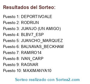 Lista de participantes: BLBV7_ESP, JUANCHO_MARQUEZ, JUANJO (UN AMIGO), MAXIMANYA10, DEPORTIVOALE, RAMIRO14, RAGNAR, BALNAVAS_BECKHAM, RODRIJN, IVAN_CARP.
