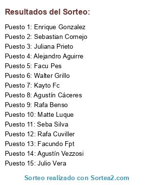 Lista de participantes: Alejandro Aguirre, Facundo Fpt, Agustín Cáceres, Facu Pes, Matte Luque, Enrique Gonzalez, Seba Silva, Walter Grillo, Rafa Benso, Agustín Vezzosi, Rafa Cuviller, Sebastian Cornejo, Kayto Fc, Julio Vera, Juliana Prieto.