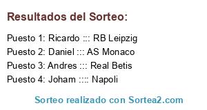 Lista de participantes: Andres ::: Real Betis, Ricardo ::: RB Leipzig, Joham :::: Napoli, Daniel ::: AS Monaco.