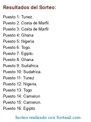 Resultados del sorteo:
