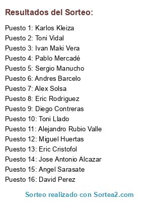 Lista de participantes: Eric Rodriguez, Eric Cristofol, Karlos Kleiza, Alex Solsa, Ivan Maki Vera, Toni Vidal, David Perez, Angel Sarasate, Sergio Manucho, Jose Antonio Alcazar, Andres Barcelo, Alejandro Rubio Valle, Miguel Huertas, Toni Llado, Pablo Mercadé, Diego Contreras.